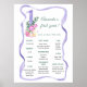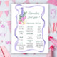 Birthday invitation card featuring watercolor illustration of number one with wild flowers and purple ribbon.
