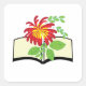 Flowers Growing from Book Square Sticker. Cute illustration of colourful flowers leaf growing from book.