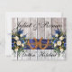 This design has a rustic with elegance, keeping it simple theme featuring a barnwood background with blue ribbon, knotted horseshoes and wildflower bouquets. These invitations are great for the country or outside wedding. Changing the fonts can create more elegant or rustic invitation. Designed to coordinate with "Gettin' Hitched - Horseshoes, Ribbon & Lace" Collection. To change details, click «Personalise». To move the text or change the text size, font, or colour click «Click to customise further»