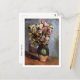 A fine art postcard with the painting by Paul Cezanne (1839-1906), titled, Flowers in an Olive Jar (c. 1880). A beautiful bouquet of various flowers in pink, yellow, and white in a green jar. Cezanne was a French Post-Impressionist artist.