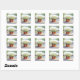 Pretty stickers with a beautiful illustration of white flowers in a copper pot with a back view of a serene lake with pine trees.