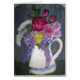 Original is painted on an oval board. Old-fashioned white glazed pitcher holding a bouquet of flowers - roses, daisies, Queen Anne's lace, buttercups and wisteria.