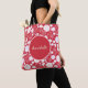 Flowers in Red Floral Pattern Custom Named Tote Bag