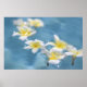 white and yellow plumeria flowers floating in a blue water water background (C) m eliot 2007