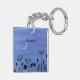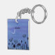 A watercolor painting of some lovely flowers under a crescent moon adorns this customisable keychain!