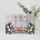 This Enclosure Card has a rustic with elegance, keeping it simple theme featuring a barnwood background with blue ribbon, lace, knotted horseshoes and wildflower bouquets. Designed to coordinate with "Gettin' Hitched - Horseshoes, Ribbon & Lace" Collection. To change details, click «Personalize». To move the text or change the text size, font, or color click «Click to customize further»