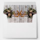 Design features a barnwood background with purple ribbon, lace, knotted horseshoes and wildflower bouquets on the inside. Outside of envelope trimmed with purple ribbon and lace. Designed to coordinate with "Gettin' Hitched - Horseshoes, Ribbon & Lace" Collection. To change details, click «Personalise». To move the text or change the text size, font, or colour click «Click to customise further»