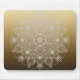 Flowers, Leaves, White Lace Floral Mandala on Gold Mouse Pad