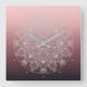 Flowers, Leaves, White Lace Floral Mandala on Pink Square Wall Clock