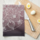 Flowers, Leaves, White Lace Floral Mandala on Pink Tea Towel