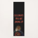 A black yoga mat with red-orange text that reads: "Celebrate, you are doing it!", on a photograph of colourful fireworks.