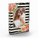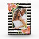 Red flowers and greenery on black and white stripes sprinkled with gold dots pattern highlights your favourite photo on this acrylic photo block. Great as a gift or to display your favourite photo in your own home.