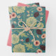 Flowers Pink Green Floral Pattern Wrapping Paper Sheet