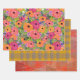 Flowers, Plaid and Geometric | Warm Colours Wrapping Paper Sheet