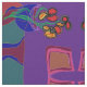 This is one of my flower still life drawings mirrored for fabric.Colourful purple / sea green /orange /and yellow. This cotton fabric is also available in other fabrics.