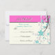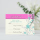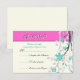 Magnolia flowers turquoise, hot pink wedding RSVP response/reply card, featuring a beautiful magnolia branch with turquoise flowers, buds and a hot pink band. Colour scheme: Ivory, turquoise, black, hot pink, grey. A modern, contemporary, elegant, floral design with an orient, Asian flair suitable for your garden spring, or summer garden wedding.