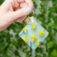 The key chain is made of metal and really sturdy. The flower design is really cheerful. The logo and colors are clear and crisp!