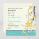 Magnolia flowers yellow turquoise wedding custom floral invitation, featuring a beautiful magnolia branch with yellow flowers, buds, a bird and turquoise solid colour at the bottom. Ivory, yellow, turquoise, black, grey. Great for a spring or summer wedding.