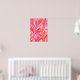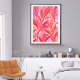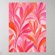 This abstract floral poster features a vibrant array of pink and orange hues, artistically blended to create an illusion of delicate petals and leaves. The design is dynamic, with sweeping lines and pointed leaf shapes that suggest movement and growth. The colour palette ranges from soft blushes to deep corals, creating a warm and inviting atmosphere. This piece would appeal to those who appreciate nature-inspired art with a modern twist, making it an ideal choice for contemporary living spaces, bedrooms, dorm rooms, or offices seeking a touch of organic elegance. Its vertical orientation and the lively yet harmonious composition will serve as a focal point in minimalist decor or complement bolder interior themes. The poster’s ability to add both colour and sophistication to a room makes it a versatile choice for various decorative purposes.