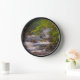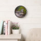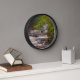 The size of the clock is dramatic and the abstract alcohol ink design is soothing and intricate at the same time. I chose the black frame that adds pop to the blue and gold design. The gold printing would be better in a slightly darker or larger font. I love it and I’m looking for just the right place in ny new apartment. I would recommend this clock for a personal gift or a present. I feel that the quality is excellent for the money! I’m a bit of a clock nut so I’m pretty particular about my purchases. The clock is larger in diameter than many if the clocks I have, so it stands out very well. I think a slightly darker printing color and a moderately larger size would best suit a professional decor or add more impact in a work place item.
