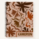 Large, 8x11 size personalized, spiral bound notebook in neutral shades of brown. Hand-illustrated design of wild flowers and flowing vines. Colors are brown, rust, beige and tan. Add his or her name in the bottom corner using a bold, printed font. The perfect size for school notes. Also comes in hardcover which works as a personal journal.