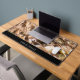 Stylish desk mat with a motivational quote "Energy flows where attention goes." combined with flowing water of a crystal clear creek as positive mindset desk mat design for elegant and modern offices.