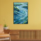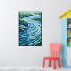 This oil painting features large flowing brushstrokes that evoke river currents through textured impasto ridges. Its calming blue and green palette create a tranquil, immersive experience perfect for serene, tactile focused spaces.