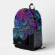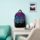 Flowing Waves of Blue, Purple & Grey on Black Printed Backpack