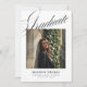 The front of the invitation features an allover photo template, allowing you to personalize it with a cherished image from your academic journey. Whether it's a formal graduation portrait or a candid shot with friends, this feature transforms the invitation into a keepsake that captures your unique story. The modern design elements are thoughtfully arranged to create a cohesive and visually appealing composition. The sleek lines and clean layout evoke the elegance of a glossy magazine spread, making your invitation a standout piece.