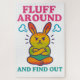 This fierce and fabulous design features a rainbow-striped bunny sitting cross-legged with arms crossed, steam puffing out from both sides of its head. With a bold scowl and vibrant colour palette, this bunny may be cute—but it's clearly not here to play. Above and below, the cheeky slogan “FLUFF AROUND AND FIND OUT” makes it crystal clear: softness doesn't mean submission. Perfect for the bold, the proud, and the unbothered.