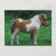 This little pony is so gosh darn cute he looks like a living doll! Multicolored in white and brown markings. He's a dartmoor pony and can be seen standing in bright green grass with some trees and bushes in the background. His hair looks so soft and fluffy and he has a cute little grey tail. Pony fans will surely love this.