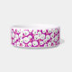 Fluffy Bichon Frise faces with pink hearts and a fuschia background makes the pawfect food or water bowl for bichon lovers.