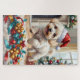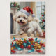 Fluffy Bichon Frise Dog Joyful Christmas Jigsaw Puzzle