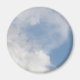 This magnet features a photograph of a gathering of fluffy white clouds capturing the beauty and power of the weather. The wispy clouds are a mixture of white and pale grey shades captured against the backdrop of a beautiful pale blue sky.