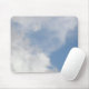 This mousepad features a photograph of a gathering of fluffy white clouds capturing the beauty and power of the weather. The wispy clouds are a mixture of white and pale grey shades captured against the backdrop of a beautiful pale blue sky.