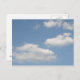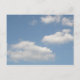 This postcard features a photograph of some fluffy white cumulus clouds floating leisurely across a beautiful blue sky.
