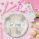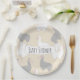Adorable grey and white llamas themed baby shower paper plates with a neutral beige background colour.