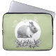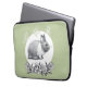 Fluffy hare with butterflies on green background laptop sleeve