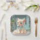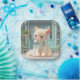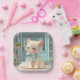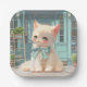 Fluffy Kitten with Blue Bow at Pastry Shop Paper Plate