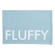 Pillowcase has large text that reads fluffy. Background colour and text are customisable