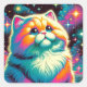 An adorable fluffy orange, pink, and white cat in space in a retro style AI generated art