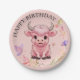 Fluffy Pink Highlands Scottish Cow Paper Plate