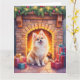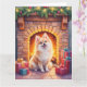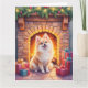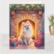 Fluffy Pomeranian Cozy Christmas Fireplace Dog Art Card