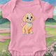 This bodysuit is decored with an image of a cute bear cuddly toy.