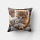 Fluffy red kitten playing with a tiny teddy bear, cushion