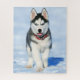Fluffy Siberian Husky Puppy in the Snow Jigsaw Puzzle