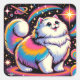 Fluffy White Cat in Space Square Sticker