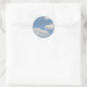 This sheet of round stickers features a photograph of some fluffy white cumulus clouds floating leisurely across a beautiful blue sky.