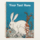 This planner is blue with a fluffy white rabbit sitting on the ground in tall plants with orange leaves and flowers. Customise your text with the template.