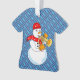 A snowman flugelhorn player wearing a music note scarf is a funny horn gift design for musicians, music teachers and students in concert and marching band.